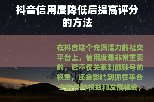 抖音信用度降低后提高评分的方法