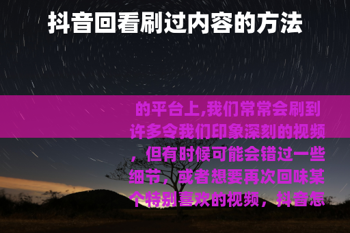 的平台上,我们常常会刷到许多令我们印象深刻的视频,但有时候可能会错过一些细节,或者想要再次回味某个特别喜欢的视频,抖音怎么回看刷过的内容呢?