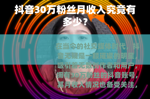 在当今的社交媒体时代,抖音无疑是一颗璀璨的明星,吸引着无数创作者和用户,拥有30万粉丝的抖音账号,其月收入情况也备受关注。