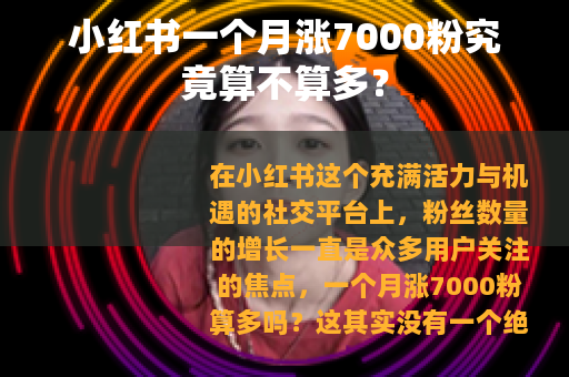 在小红书这个充满活力与机遇的社交平台上,粉丝数量的增长一直是众多用户关注的焦点,一个月涨7000粉算多吗?这其实没有一个绝对的标准,需要从多个角度来分析。