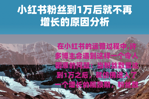小红书粉丝到1万后不再增长是由多种因素共同作用的结果,创作者们需要认真分析自身账号存在的问题,从内容创作、质量把控、算法适应、粉丝互动以及账号定位等多个方面入手,不断优化和改进,才能突破瓶颈,实现粉丝数量的持续增长。