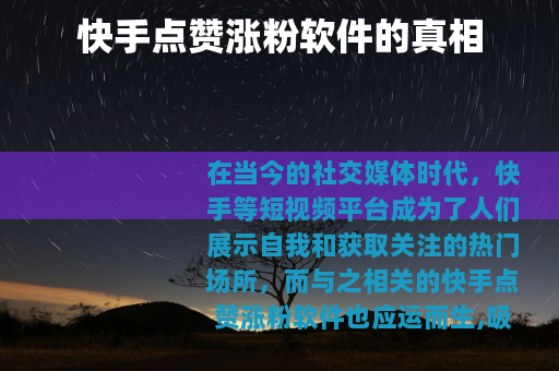 在当今的社交媒体时代,快手等短视频平台成为了人们展示自我和获取关注的热门场所,而与之相关的快手点赞涨粉软件也应运而生,吸引了众多用户的目光。