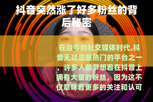 在当今的社交媒体时代,抖音无疑是最热门的平台之一,许多人都梦想着在抖音上拥有大量的粉丝,因为这不仅意味着更多的关注和认可,还可能带来各种商业机会和收益,当你的抖音账号突然涨了好多粉丝时,这背后可能有着不同的原因和情况。