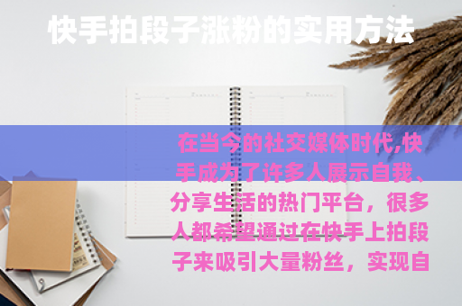 在当今的社交媒体时代,快手成为了许多人展示自我、分享生活的热门平台,很多人都希望通过在快手上拍段子来吸引大量粉丝,实现自己的影响力提升和个人价值的展现,快手不知道拍段子怎么涨粉丝该怎么办呢?下面就为大家介绍一些实用的方法。