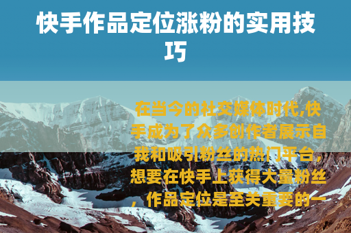 在当今的社交媒体时代,快手成为了众多创作者展示自我和吸引粉丝的热门平台,想要在快手上获得大量粉丝,作品定位是至关重要的一环,以下是一些快手作品定位涨粉的技巧,希望能帮助到各位创作者。
