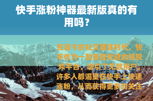 在当今的社交媒体时代,快手作为一款备受欢迎的短视频平台,吸引了无数用户,许多人都渴望在快手上快速涨粉,从而获得更多的关注和机会,市场上出现了各种各样声称是快手涨粉神器最新版的工具。