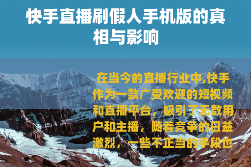 在当今的直播行业中,快手作为一款广受欢迎的短视频和直播平台,吸引了无数用户和主播,随着竞争的日益激烈,一些不正当的手段也悄然出现,其中就包括所谓的快手直播刷假人手机版。