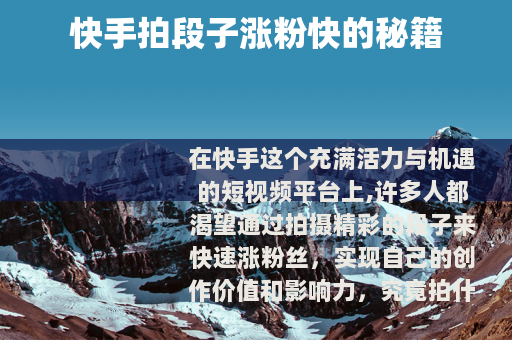 要想在快手上通过拍段子快速涨粉丝,就需要在趣味性、独特性、热点性和实用性等方面下功夫,不断挖掘自己的潜力,创作出优质、有吸引力的段子,才能在快手这个竞争激烈的平台上收获更多的粉丝,实现自己的短视频创作梦想。