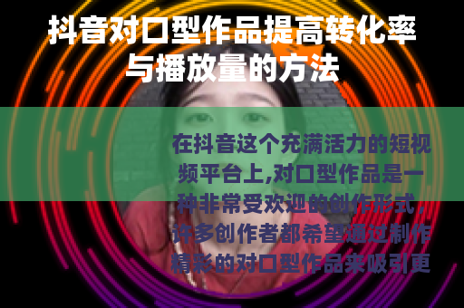 在抖音这个充满活力的短视频平台上,对口型作品是一种非常受欢迎的创作形式,许多创作者都希望通过制作精彩的对口型作品来吸引更多的观众,提高转化率和播放量,以下是一些有效的方法,可以帮助你在抖音上让对口型作品获得更好的成绩。