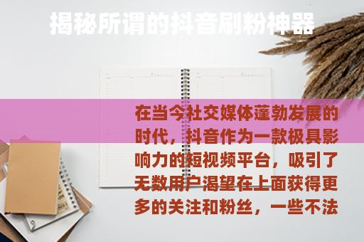 在当今社交媒体蓬勃发展的时代,抖音作为一款极具影响力的短视频平台,吸引了无数用户渴望在上面获得更多的关注和粉丝,一些不法分子便利用人们的这种心理,推出了所谓的“抖音刷粉神器”,声称可以快速帮助用户增加粉丝数量,提升账号的热度。