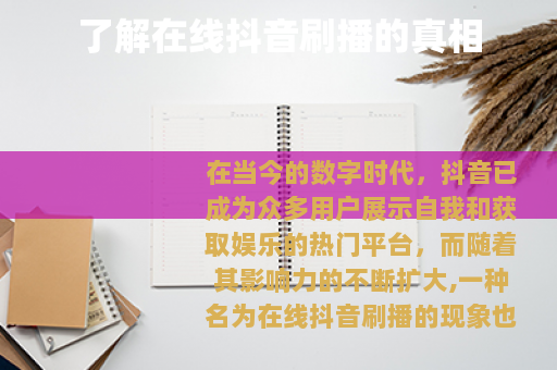 在当今的数字时代,抖音已成为众多用户展示自我和获取娱乐的热门平台,而随着其影响力的不断扩大,一种名为在线抖音刷播的现象也逐渐进入了人们的视野。