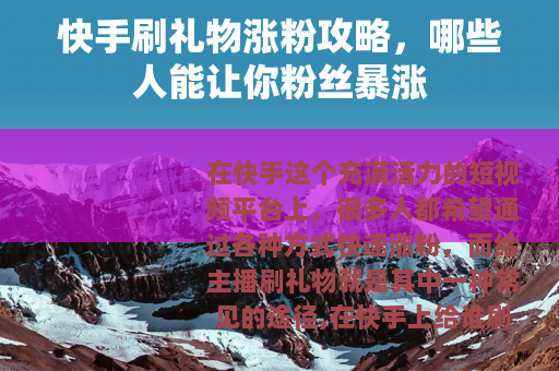 在快手这个充满活力的短视频平台上,很多人都希望通过各种方式快速涨粉,而给主播刷礼物就是其中一种常见的途径,在快手上给谁刷礼物涨粉多呢?