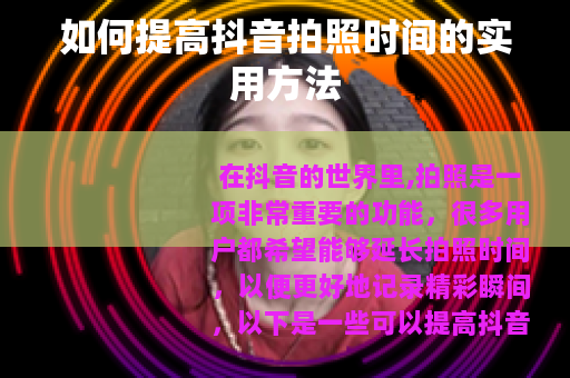 通过以上这些方法的综合运用,就可以有效地提高抖音拍照时间,让你在抖音的创作之旅中能够更加从容地记录下每一个美好的时刻,为你的抖音作品增添更多的魅力和亮点。