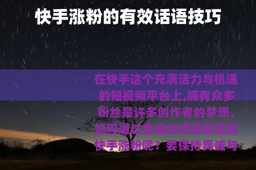 在快手这个充满活力与机遇的短视频平台上,拥有众多粉丝是许多创作者的梦想,如何通过合适的话语来实现快手涨粉呢?