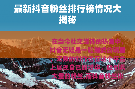 在当今社交媒体的热潮中,抖音无疑是一颗璀璨的明星,无数的创作者在这个平台上展现自己的才华,吸引着大量的粉丝,而抖音粉丝排行榜最近的情况也备受关注。