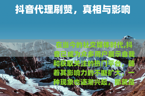 在当今的社交媒体时代,抖音已成为众多用户展示自我和获取关注的热门平台,随着其影响力的不断扩大,一种现象也逐渐兴起,那就是抖音代理刷赞。