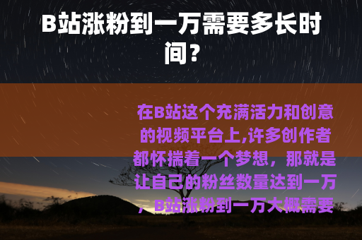 在B站这个充满活力和创意的视频平台上,许多创作者都怀揣着一个梦想,那就是让自己的粉丝数量达到一万,B站涨粉到一万大概需要多久呢?