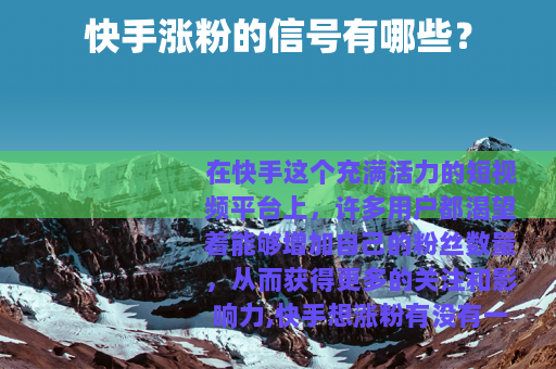 在快手这个充满活力的短视频平台上,许多用户都渴望着能够增加自己的粉丝数量,从而获得更多的关注和影响力,快手想涨粉有没有一些特定的信号呢?