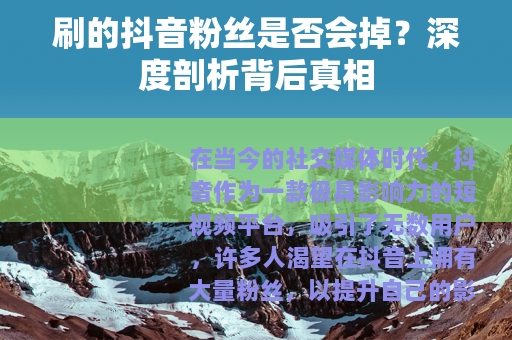 在当今的社交媒体时代,抖音作为一款极具影响力的短视频平台,吸引了无数用户,许多人渴望在抖音上拥有大量粉丝,以提升自己的影响力和知名度,刷粉丝这种行为便应运而生,刷的抖音粉丝是不是会掉呢?这是一个备受关注的问题。