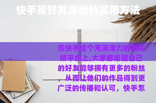 在快手这个充满活力的短视频平台上,大家都希望自己的好友能够拥有更多的粉丝,从而让他们的作品得到更广泛的传播和认可,快手怎么帮好友涨粉呢?以下是一些切实可行的方法。