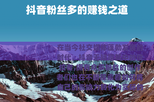 在当今社交媒体蓬勃发展的时代,抖音无疑是其中的佼佼者,拥有众多粉丝的创作者们也在不断探索着如何将自己的影响力转化为实际的收益。