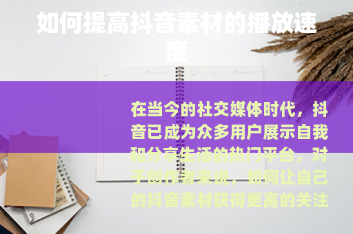 在当今的社交媒体时代,抖音已成为众多用户展示自我和分享生活的热门平台,对于创作者来说,如何让自己的抖音素材获得更高的关注度和播放量是一个重要的课题,而提高素材的播放速度就是其中一个关键因素。
