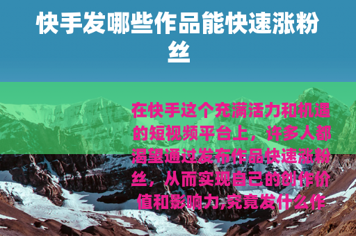 在快手这个充满活力和机遇的短视频平台上,许多人都渴望通过发布作品快速涨粉丝,从而实现自己的创作价值和影响力,究竟发什么作品能够达到快速涨粉的效果呢?