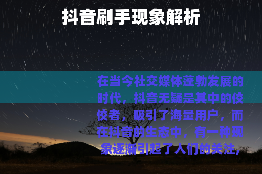 在当今社交媒体蓬勃发展的时代,抖音无疑是其中的佼佼者,吸引了海量用户,而在抖音的生态中,有一种现象逐渐引起了人们的关注,那就是抖音刷手。