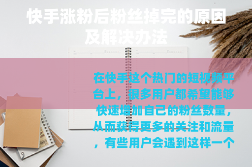 在快手这个热门的短视频平台上,很多用户都希望能够快速增加自己的粉丝数量,从而获得更多的关注和流量,有些用户会遇到这样一个令人困扰的情况,那就是好不容易涨起来的粉丝突然掉完了,这无疑给他们带来了很大的打击。