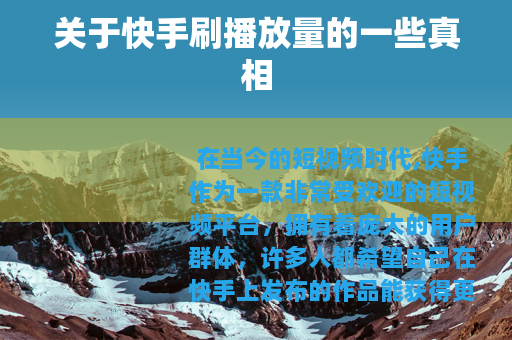 在当今的短视频时代,快手作为一款非常受欢迎的短视频平台,拥有着庞大的用户群体,许多人都希望自己在快手上发布的作品能获得更多的播放量,从而提高自己的知名度和影响力,一些所谓的“快手刷播放免费网址”开始在网络上流传。