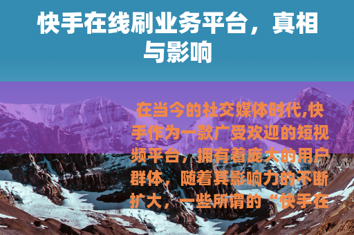 在当今的社交媒体时代,快手作为一款广受欢迎的短视频平台,拥有着庞大的用户群体,随着其影响力的不断扩大,一些所谓的“快手在线刷业务平台”也应运而生。