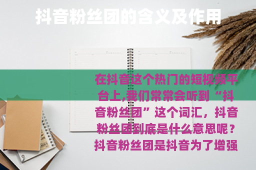 在抖音这个热门的短视频平台上,我们常常会听到“抖音粉丝团”这个词汇,抖音粉丝团到底是什么意思呢?