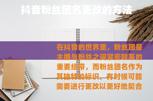 在抖音的世界里,粉丝团是主播与粉丝之间紧密联系的重要纽带,而粉丝团名作为其独特的标识,有时候可能需要进行更改以更好地契合主播的风格或发展阶段,抖音粉丝团名究竟怎么更改呢?