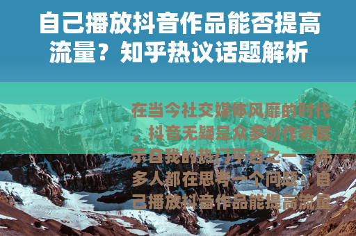 在当今社交媒体风靡的时代,抖音无疑是众多创作者展示自我的热门平台之一,许多人都在思考一个问题:自己播放抖音作品能提高流量吗?这个问题在知乎等社交问答平台上也引发了热烈的讨论。