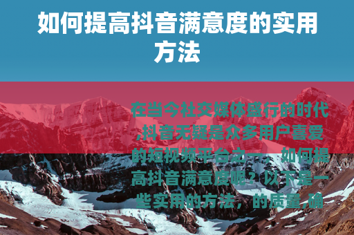 在当今社交媒体盛行的时代,抖音无疑是众多用户喜爱的短视频平台之一,如何提高抖音满意度呢?以下是一些实用的方法。