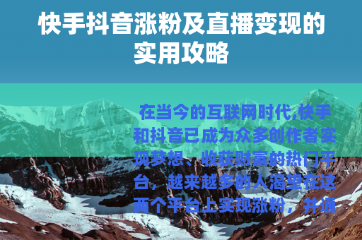 在当今的互联网时代,快手和抖音已成为众多创作者实现梦想、收获财富的热门平台,越来越多的人渴望在这两个平台上实现涨粉,并通过直播成功变现,究竟该如何在快手和抖音上实现这些目标呢?