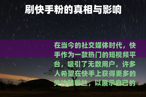 在当今的社交媒体时代,快手作为一款热门的短视频平台,吸引了无数用户,许多人希望在快手上获得更多的关注和粉丝,以展示自己的才华或推广自己的业务,有一种现象逐渐兴起,那就是刷快手粉。