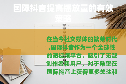 在当今社交媒体的繁荣时代,国际抖音作为一个全球性的短视频平台,吸引了无数创作者和用户,对于希望在国际抖音上获得更多关注和播放量的创作者来说,掌握一些有效的策略是至关重要的。