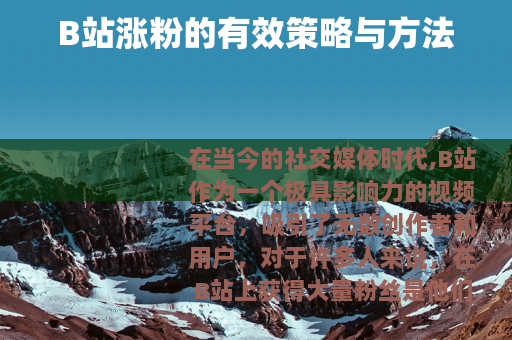 在当今的社交媒体时代,B站作为一个极具影响力的视频平台,吸引了无数创作者和用户,对于许多人来说,在B站上获得大量粉丝是他们的目标之一,那么如何才能实现B站涨粉呢? 质量是关键,要制作出有吸引力、有价值的视频内容,这意味着要深入了解自己的目标受众,知道他们感兴趣的话题和喜好,如果你面向的是年轻的游戏玩家群体,那么制作精彩的游戏攻略、有趣的游戏实测视频等就会更容易吸引他们的关注,要注重视频的剪辑和制作,确保画面清晰、流畅,音频效果良好,通过精美的制作提升视频的观赏性。