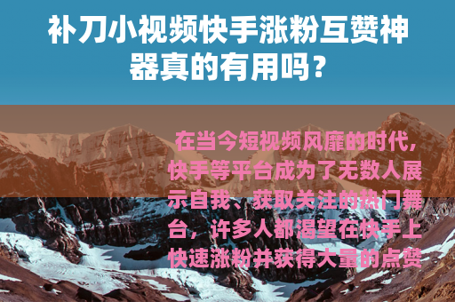 在当今短视频风靡的时代,快手等平台成为了无数人展示自我、获取关注的热门舞台,许多人都渴望在快手上快速涨粉并获得大量的点赞,以提升自己的影响力和知名度,而“补刀小视频快手涨粉互赞神器”这样的说法也应运而生,吸引了众多用户的目光。