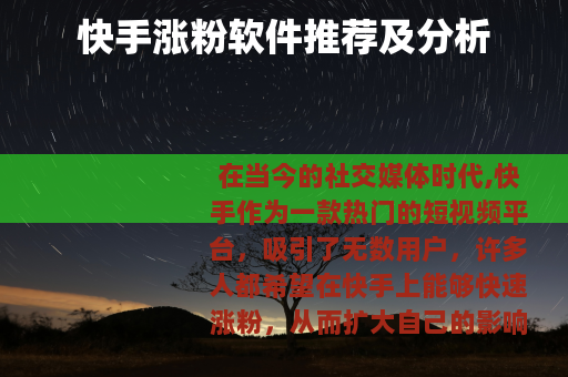 在当今的社交媒体时代,快手作为一款热门的短视频平台,吸引了无数用户,许多人都希望在快手上能够快速涨粉,从而扩大自己的影响力和获得更多的机会,市场上出现了众多的快手涨粉软件,快手涨粉软件哪个好呢?