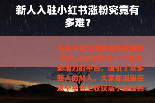 在当今社交媒体蓬勃发展的时代,小红书作为一个极具影响力的平台,吸引了众多新人的加入,大家都渴望在这个平台上收获属于自己的粉丝群体,实现自己的价值和影响力,新人入驻小红书涨粉真的好难嘛?
