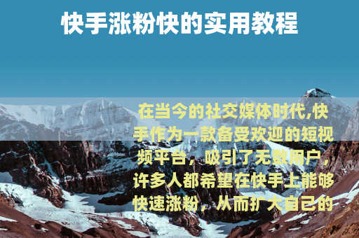 在当今的社交媒体时代,快手作为一款备受欢迎的短视频平台,吸引了无数用户,许多人都希望在快手上能够快速涨粉,从而扩大自己的影响力和社交圈,以下是一些快手涨粉快的教程,希望能对大家有所帮助。