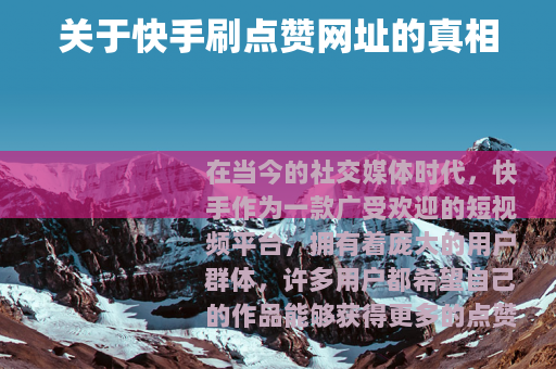 在当今的社交媒体时代,快手作为一款广受欢迎的短视频平台,拥有着庞大的用户群体,许多用户都希望自己的作品能够获得更多的点赞,以提高曝光度和人气,在网络上搜索快手刷点赞网址的现象却时有发生。
