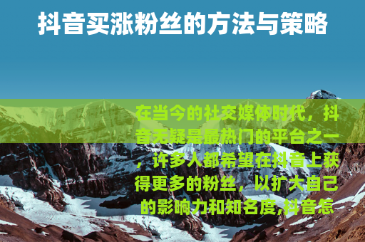 在当今的社交媒体时代,抖音无疑是最热门的平台之一,许多人都希望在抖音上获得更多的粉丝,以扩大自己的影响力和知名度,抖音怎么样买涨粉丝呢?