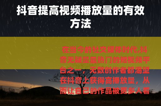 在当今的社交媒体时代,抖音无疑是最热门的短视频平台之一,无数创作者都渴望在抖音上获得高播放量,从而让自己的作品被更多人看到,实现个人价值和商业目标,抖音怎么提高视频的播放量和播放量大小呢?以下是一些实用的技巧。