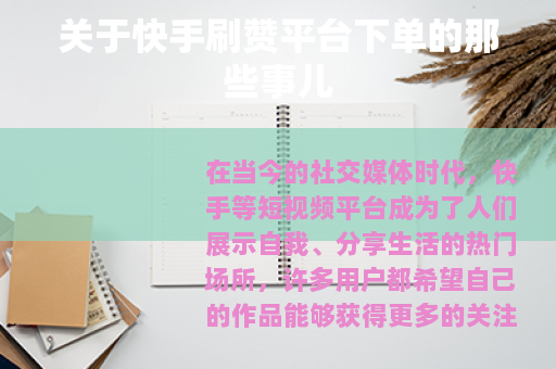 在当今的社交媒体时代,快手等短视频平台成为了人们展示自我、分享生活的热门场所,许多用户都希望自己的作品能够获得更多的关注和点赞,从而在平台上拥有更高的人气,一些所谓的快手刷赞平台下单服务便应运而生。