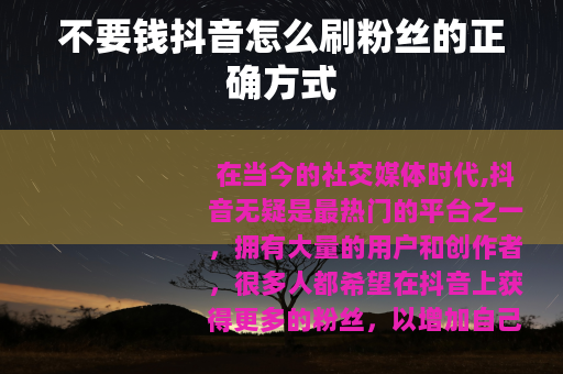 在当今的社交媒体时代,抖音无疑是最热门的平台之一,拥有大量的用户和创作者,很多人都希望在抖音上获得更多的粉丝,以增加自己的影响力和知名度,而“不要钱抖音怎么刷粉丝”成为了不少人关注的话题。