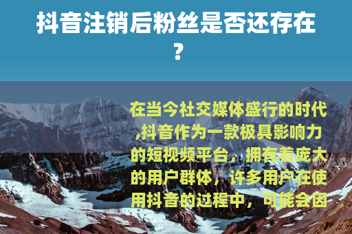 在当今社交媒体盛行的时代,抖音作为一款极具影响力的短视频平台,拥有着庞大的用户群体,许多用户在使用抖音的过程中,可能会因为各种原因考虑注销自己的账号,而其中一个备受关注的问题就是:抖音注销后粉丝还在不在呢?