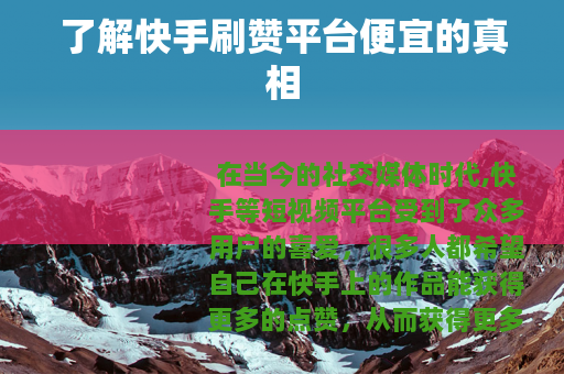 在当今的社交媒体时代,快手等短视频平台受到了众多用户的喜爱,很多人都希望自己在快手上的作品能获得更多的点赞,从而获得更多的关注和流量,一些所谓的快手刷赞平台便宜的信息开始在网络上出现。